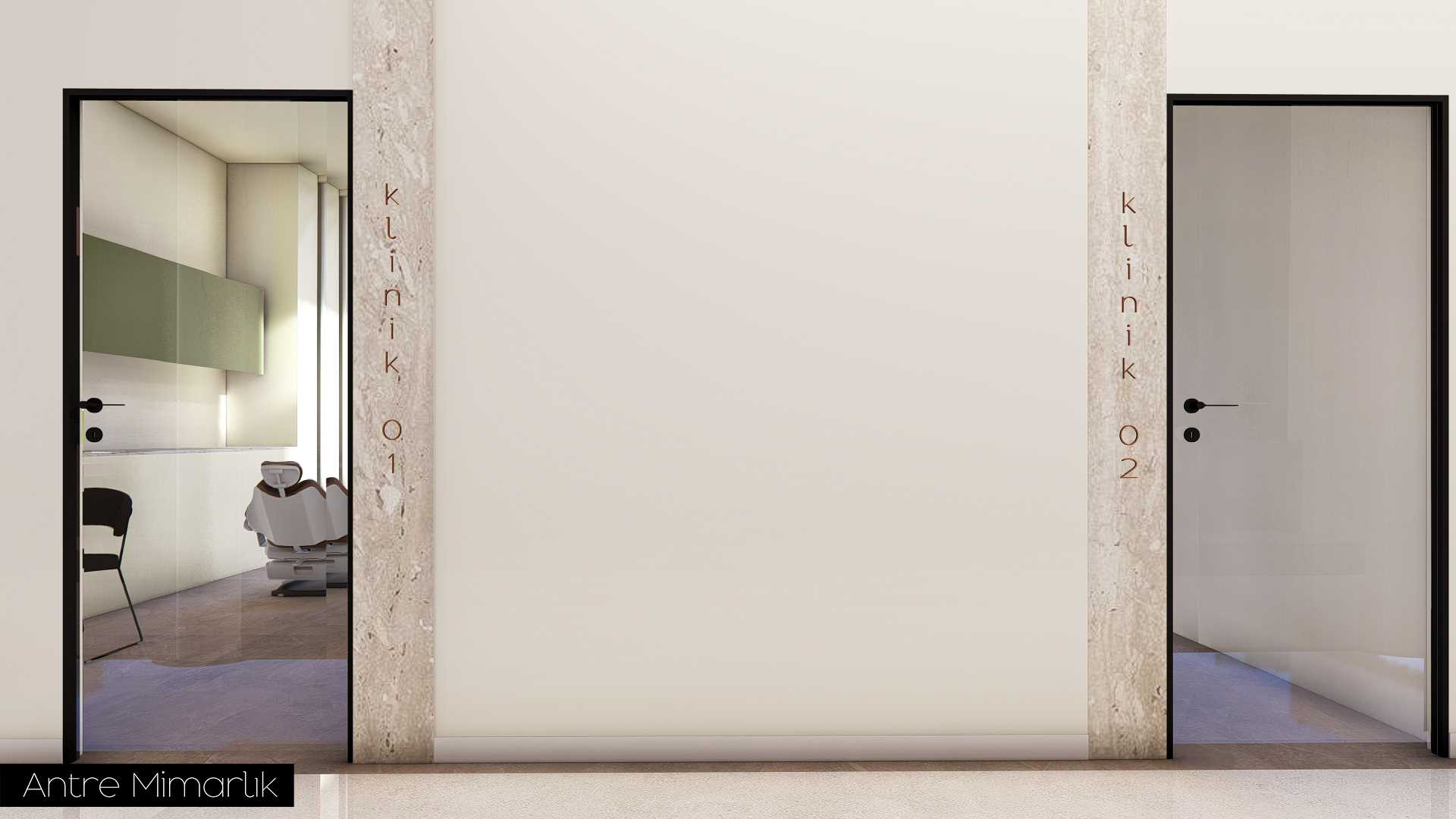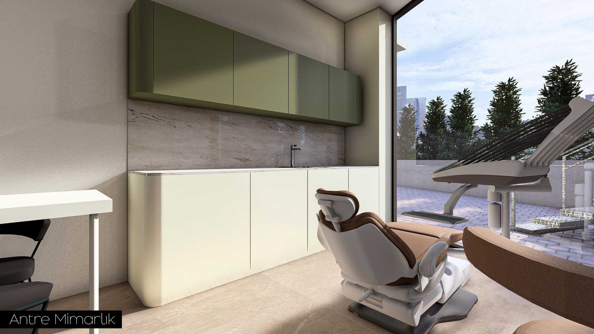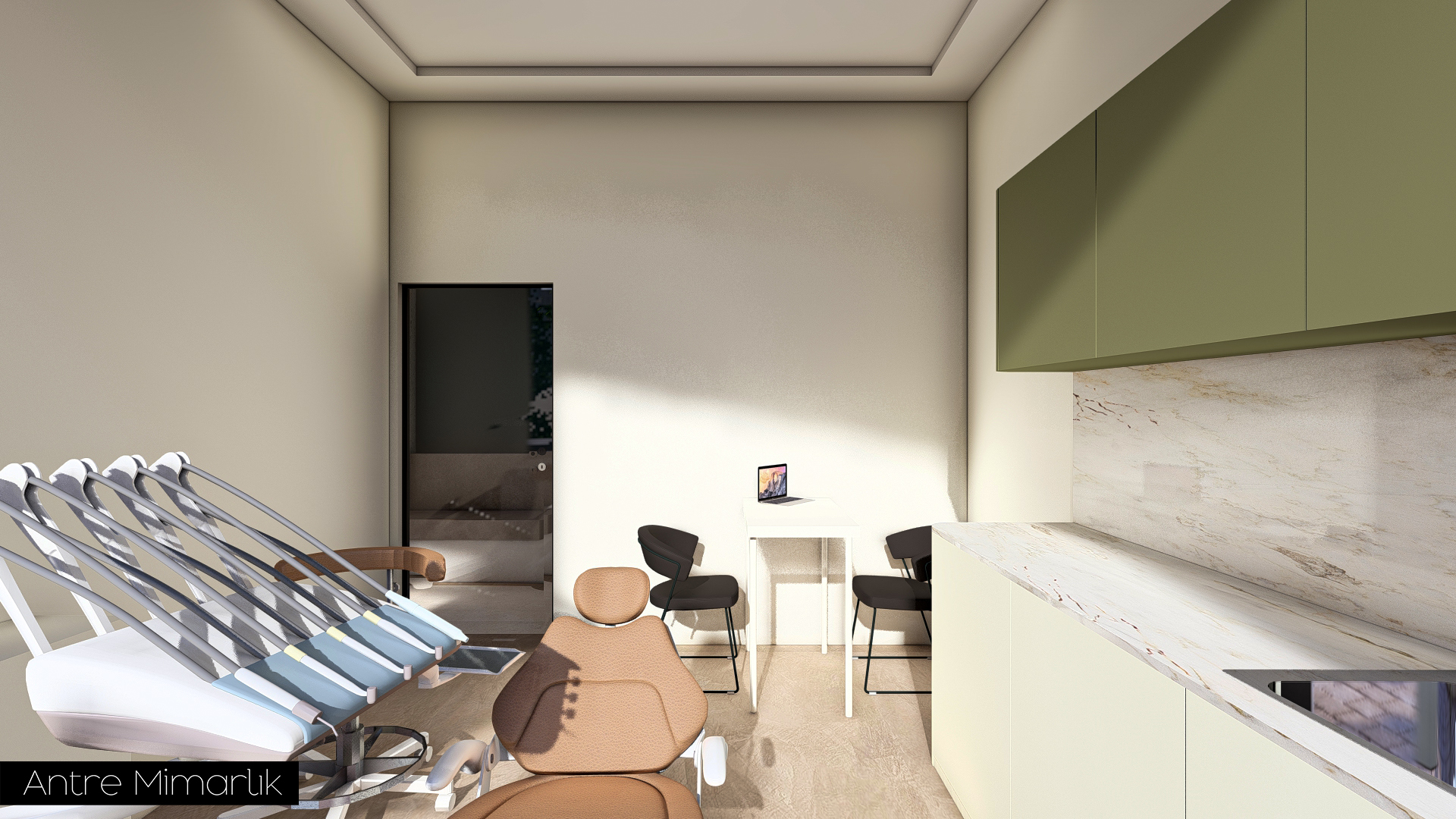 Bu projede, Dt. SHK için tasarlanan Ağız ve Diş Sağlığı Kliniği, Antre Mimarlık tarafından kullanıcı ihtiyaçları ve sağlık mekânı gereklilikleri doğrultusunda işlevsel ve estetik bir yaklaşımla yeniden ele alındı. Klinik düzeni, akış ve kullanım konforunu artıracak şekilde optimize edilerek modern, ferah ve profesyonel bir ortam oluşturuldu. Malzeme seçimlerinden mekânsal kurgusuna kadar her detay, hem hastaların hem de sağlık çalışanlarının deneyimini iyileştirmeyi hedefleyen bütüncül bir tasarım anlayışıyla şekillendirildi.
