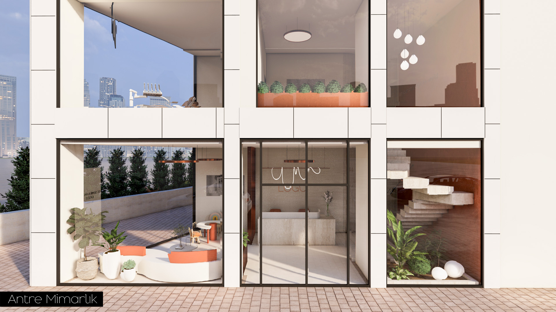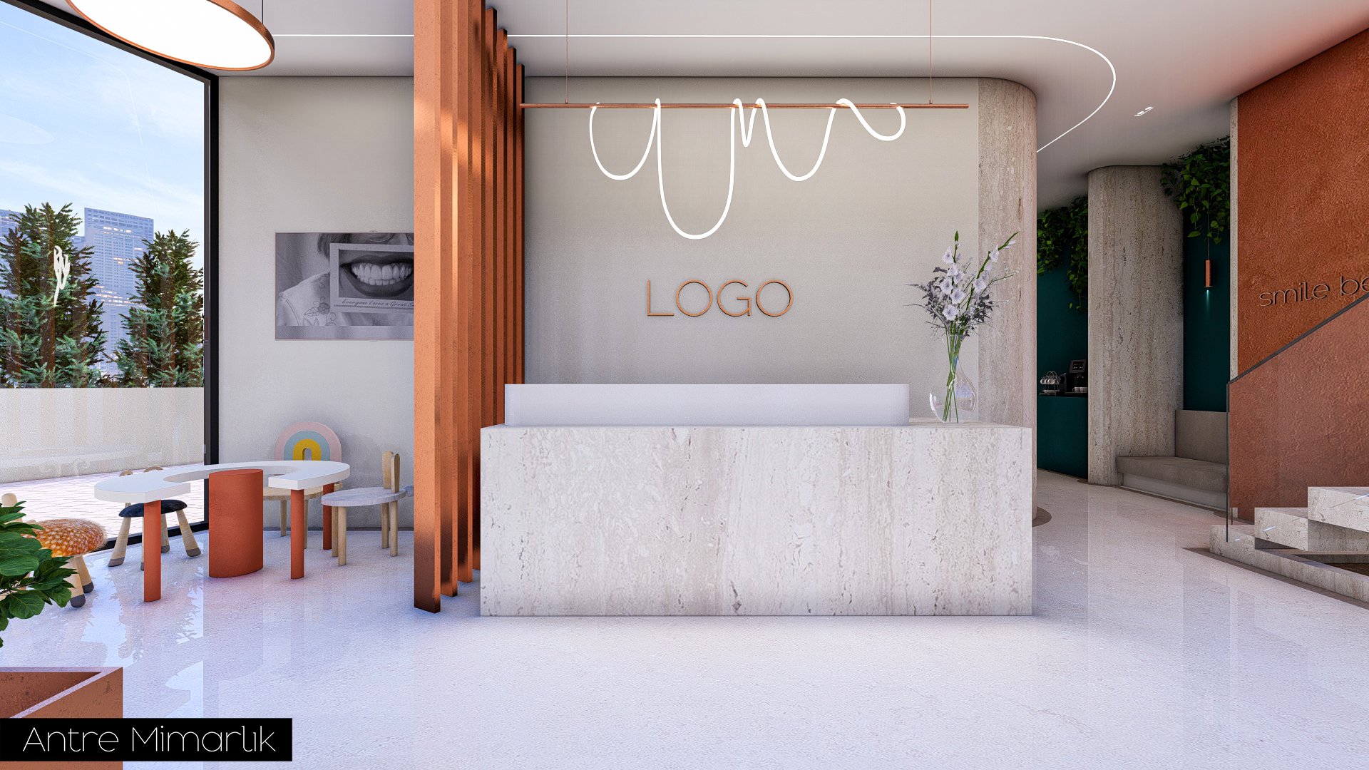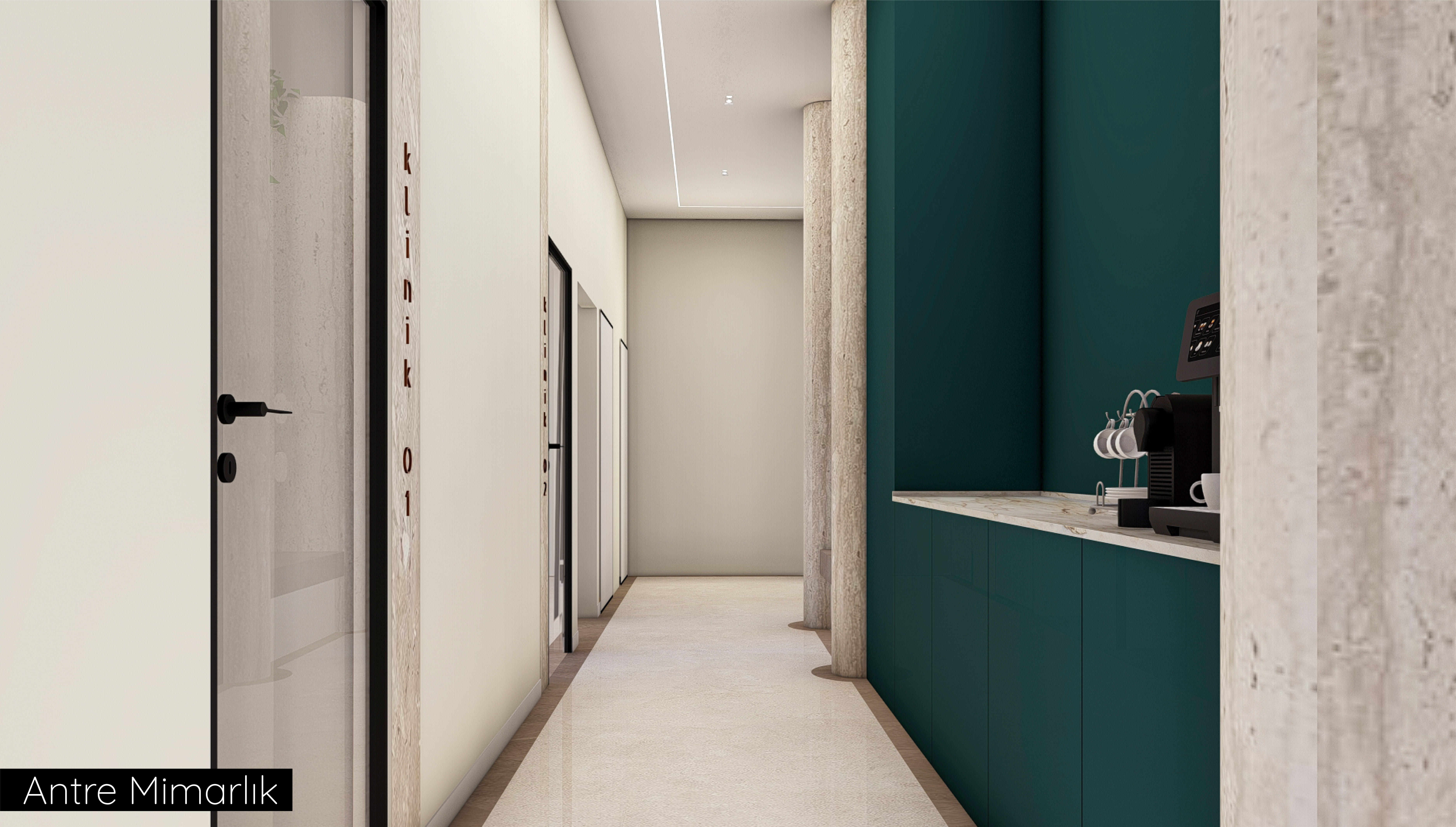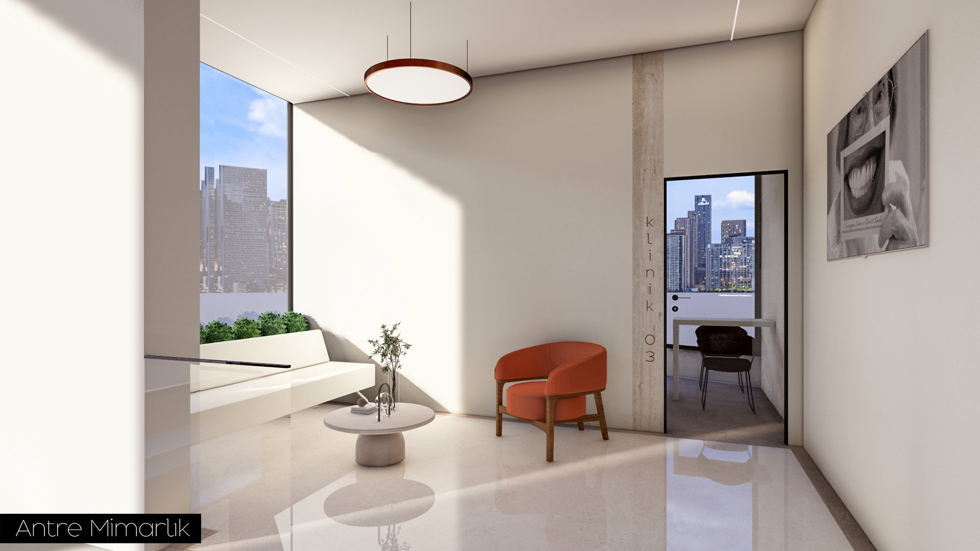 Bu projede, Dt. SHK için tasarlanan Ağız ve Diş Sağlığı Kliniği, Antre Mimarlık tarafından kullanıcı ihtiyaçları ve sağlık mekânı gereklilikleri doğrultusunda işlevsel ve estetik bir yaklaşımla yeniden ele alındı. Klinik düzeni, akış ve kullanım konforunu artıracak şekilde optimize edilerek modern, ferah ve profesyonel bir ortam oluşturuldu. Malzeme seçimlerinden mekânsal kurgusuna kadar her detay, hem hastaların hem de sağlık çalışanlarının deneyimini iyileştirmeyi hedefleyen bütüncül bir tasarım anlayışıyla şekillendirildi.