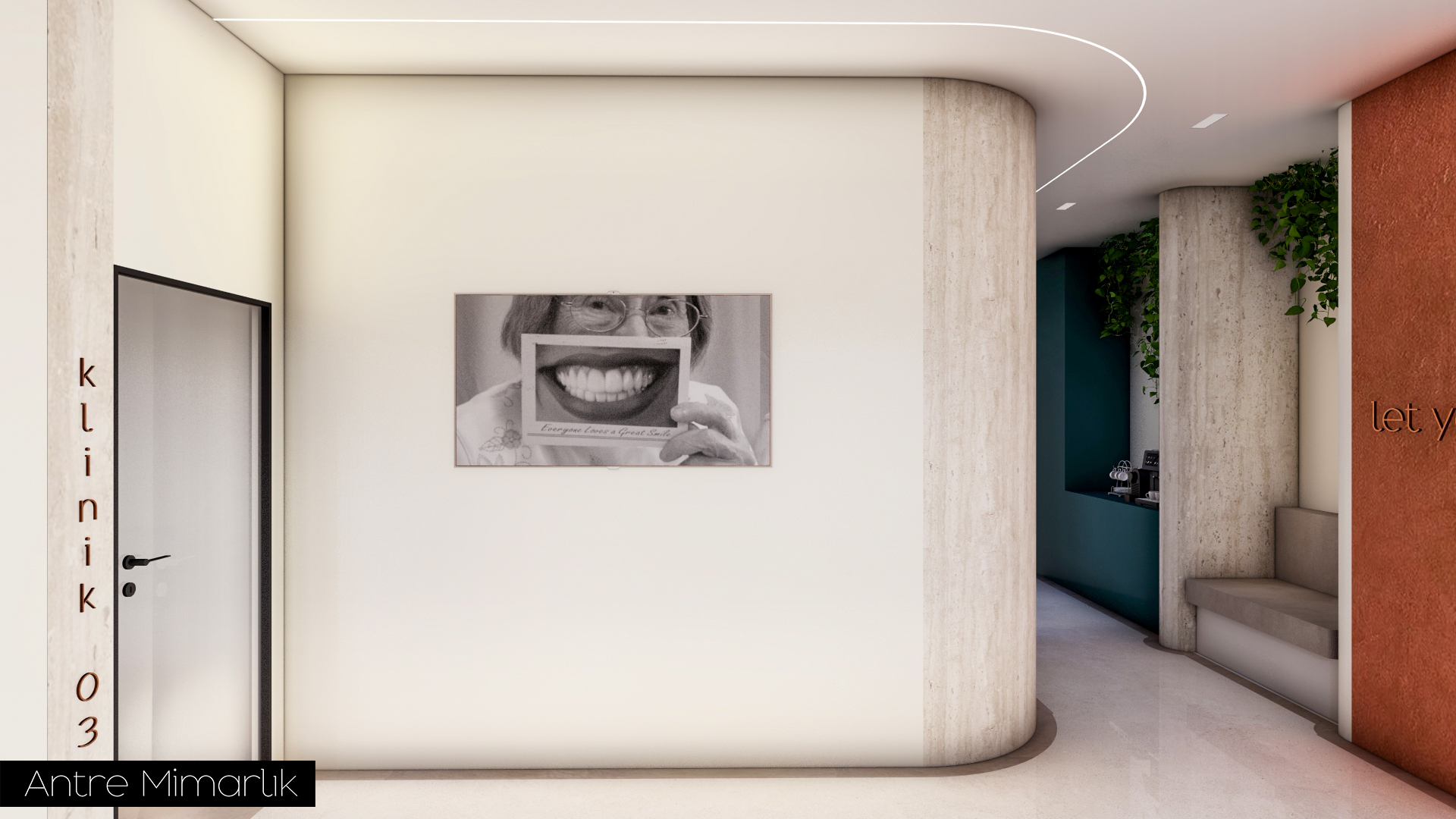 Bu projede, Dt. SHK için tasarlanan Ağız ve Diş Sağlığı Kliniği, Antre Mimarlık tarafından kullanıcı ihtiyaçları ve sağlık mekânı gereklilikleri doğrultusunda işlevsel ve estetik bir yaklaşımla yeniden ele alındı. Klinik düzeni, akış ve kullanım konforunu artıracak şekilde optimize edilerek modern, ferah ve profesyonel bir ortam oluşturuldu. Malzeme seçimlerinden mekânsal kurgusuna kadar her detay, hem hastaların hem de sağlık çalışanlarının deneyimini iyileştirmeyi hedefleyen bütüncül bir tasarım anlayışıyla şekillendirildi.